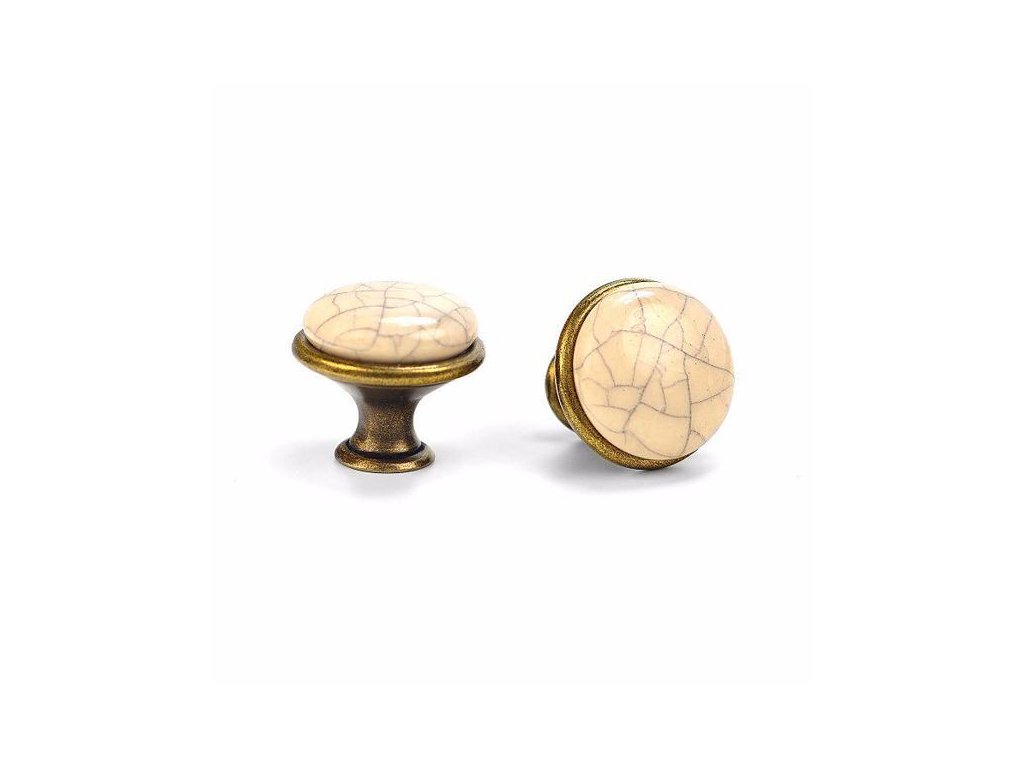 Porcelánový knopok v prevedení starého zlato. Vrch vzor MLK4. Diera má priemer skrutky 4 mm.