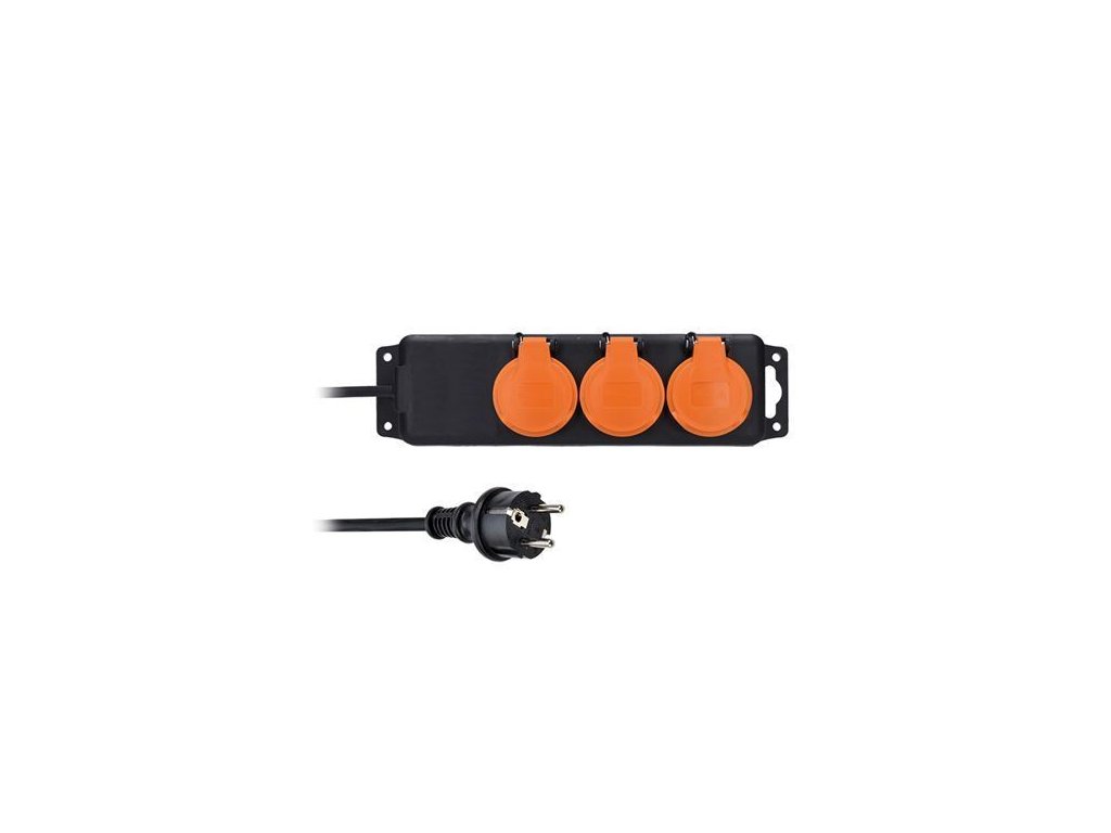 Predlžovací prívod IP44, 3 zásuvky, gumový kábel, vonkajší, 10m PP324
