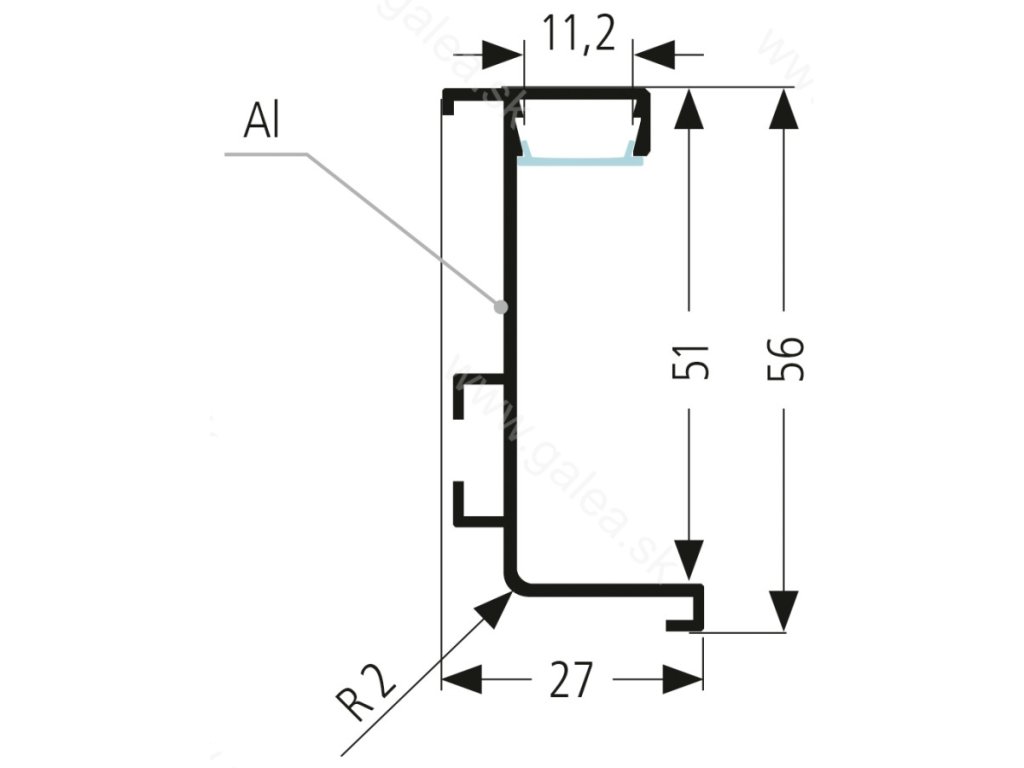 S056/LED - úchytový profil LED pod pracovnú dosku, materiál hliník. Cena je za 1 ks