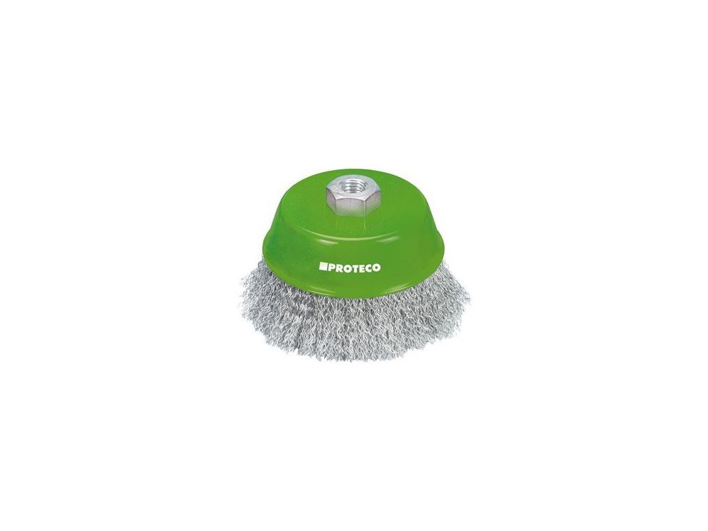 Hrnčeková kefa 100 mm nerez predstavuje nástroj na zbavenie korózie, leštenie alebo odstraňovanie nečistôt z materiálov rôznych veľkostí aj tvarov najmä potom ocele. Hrnčeková kefa sa tak stáva vhodným nástrojom pre prácu doma, v dielni aj na záhrade. Je vyrobená z veľmi vydarenej a vyváženej kombinácie chróm-vanádiovej ocele a ušľachtilej ocele, garantujúci vysokú mieru bezpečnosti, nízkej hodnoty vibrácií a tým aj pokoja kefy v behu. Vďaka upínacej matici so závitom M14 a stúpaním 2, je ideálna pre prakticky všetky moderné uhlové brúsky.