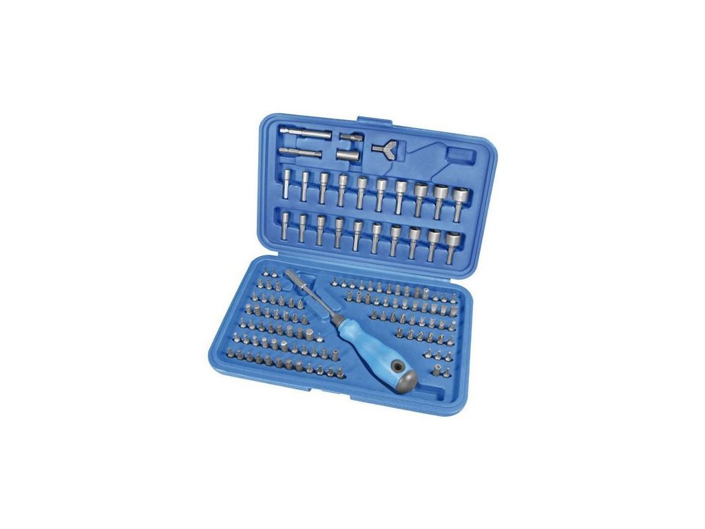 Sada bitov 122 kusov obsahuje bity, ktoré sa dajú použiť na skrutkovanie rôznych veľkostí a tvarov skrutiek: PL (plochý), PH a PH (kríž), 6HR (hex), TRX a TRX s otvormi , Tzv. Hviezda) a mnoho ďalších. Bity sú vyrobené z vysoko kvalitnej chróm-vanádovej ocele a ich jednotlivé tvary sú špeciálne frézované, aby zaručili maximálnu trvanlivosť, presnosť a kvalitu pri používaní. Súprava obsahuje tiež rýchloupínací držiak bitov vyrobený z CrV ocele, ktorý môže byť tiež upnutý do skrutkovača alebo vrtáku PROTECO, čo uľahčuje a zjednodušuje prácu.