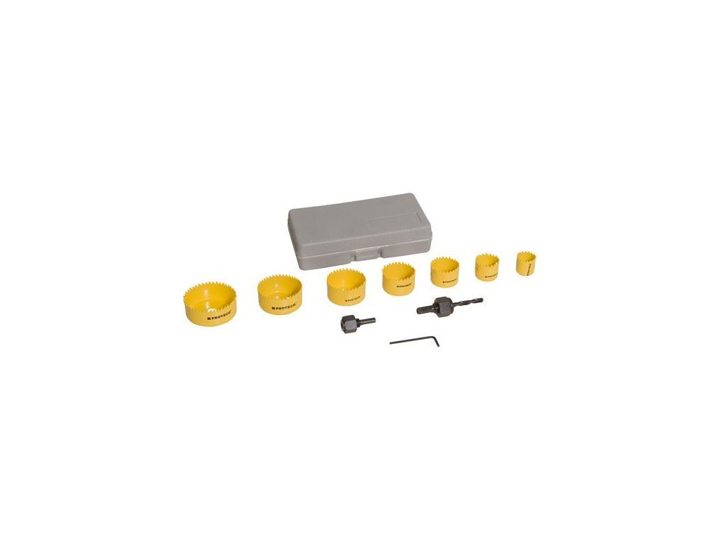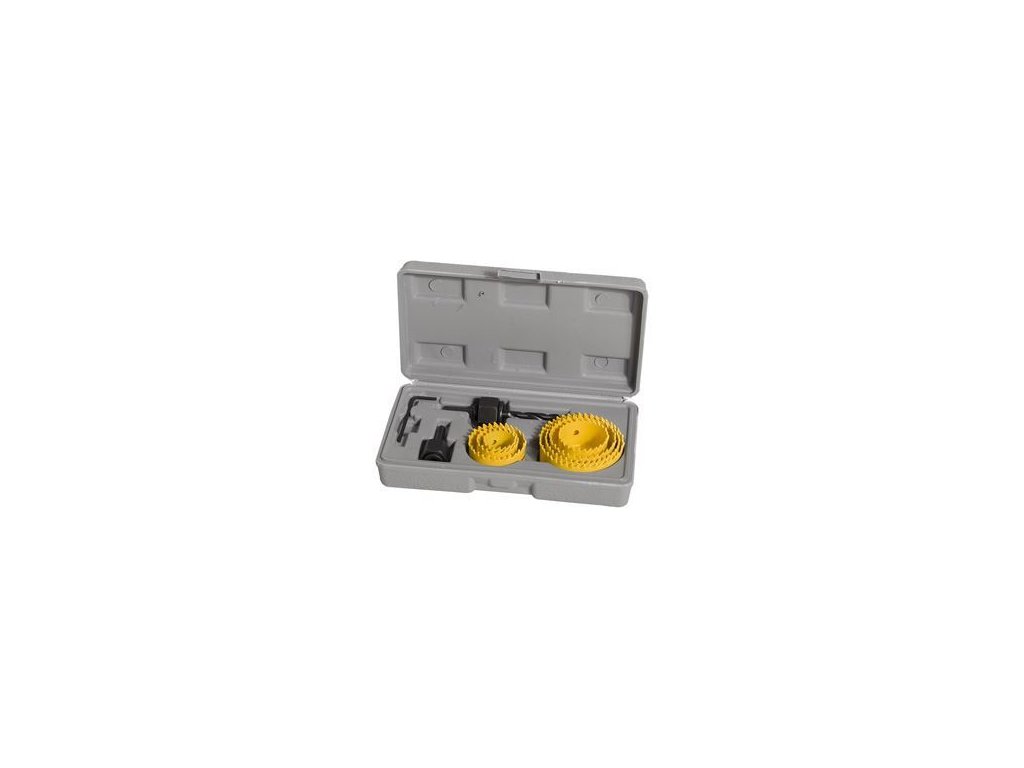 Sada vykružovacia pil z rýchloreznej ocele (HSS) v kufri. Sada je určená pre vŕtanie do mäkkého aj tvrdého dreva a sadrokartónu. Súčasťou sady je aj držiak vykružovací píl so šesťhrannou stopkou.