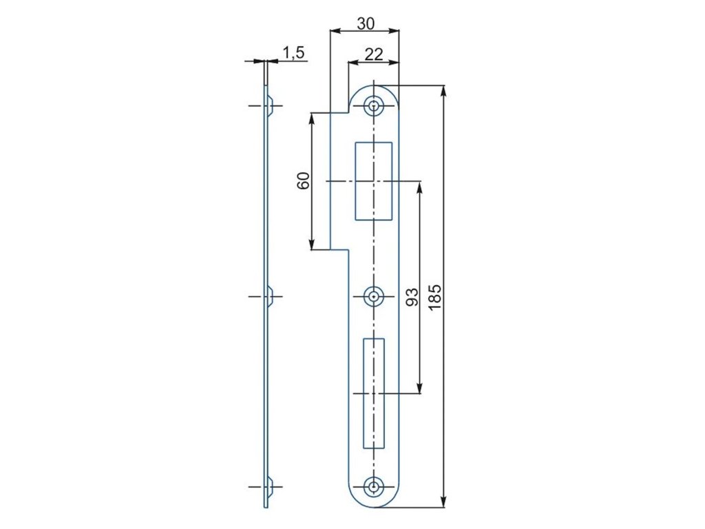 Protiplech k dverovým zámkom, rovný, oblúkový, K-180 2/2 PRAVÝ pozinkovaný DOPREDAJ