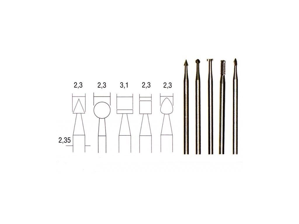 Proxxon 28710 frézy stopkové sada 5ks (kužeľ, guľa, valec, disk, kvapka)