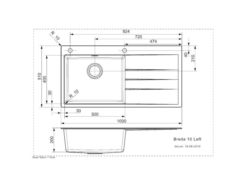 | Rozmery drezu: | 1 000 x 510 mm |