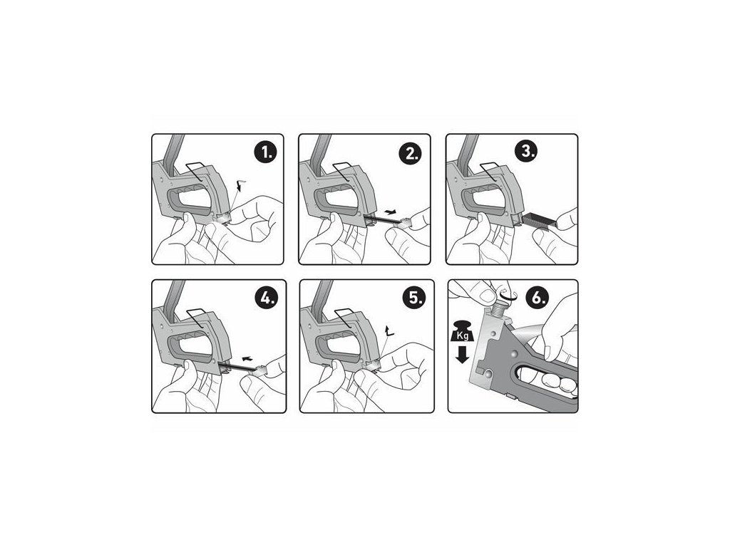 - skrutka pre nastavenie sily úderu podľa veľkosti spony a tvrdosti materiálu