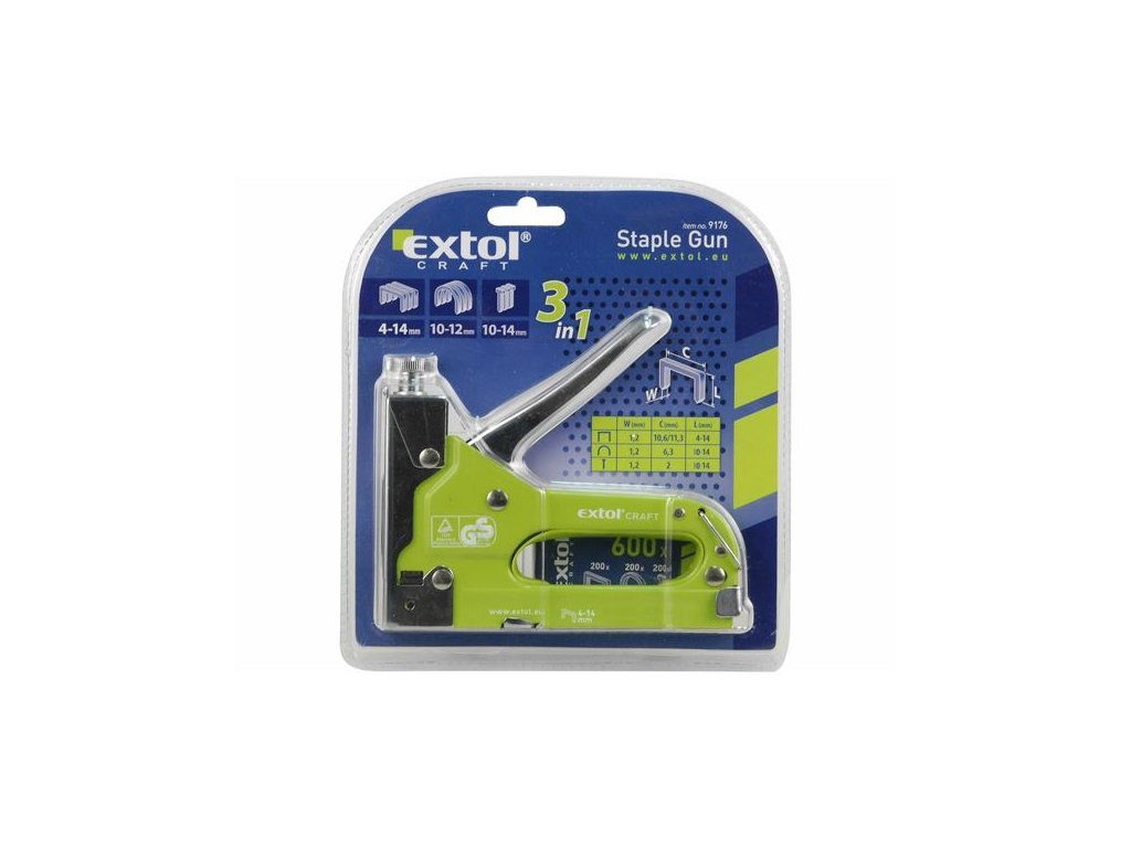 Pištoľ sponkovacia, hrúbka spony 1,2mm, dĺžka spony 4-14mm, EXTOL CRAFT 9176