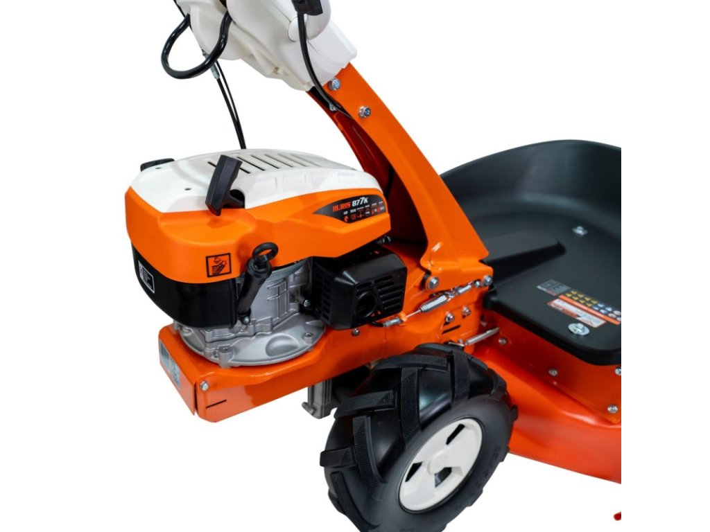 Pokiaľ ide o výkon, bubnová kosačka RURIS 877K vyniká šírkou záberu 570 mm, ktorá užívateľovi pomáha efektívne pokryť plochu pôdy, ktorá sa má vyčistiť.