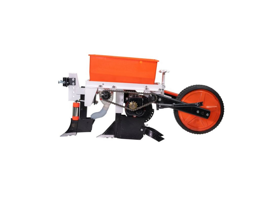 Hnacie kolesá sú poháňané pomocou reťaze na blokoch pre rozvoz semien, ktoré nechávajú osivo padať do drážky pripravenej radličkou.Výrobok má vaňu na uloženie semien.