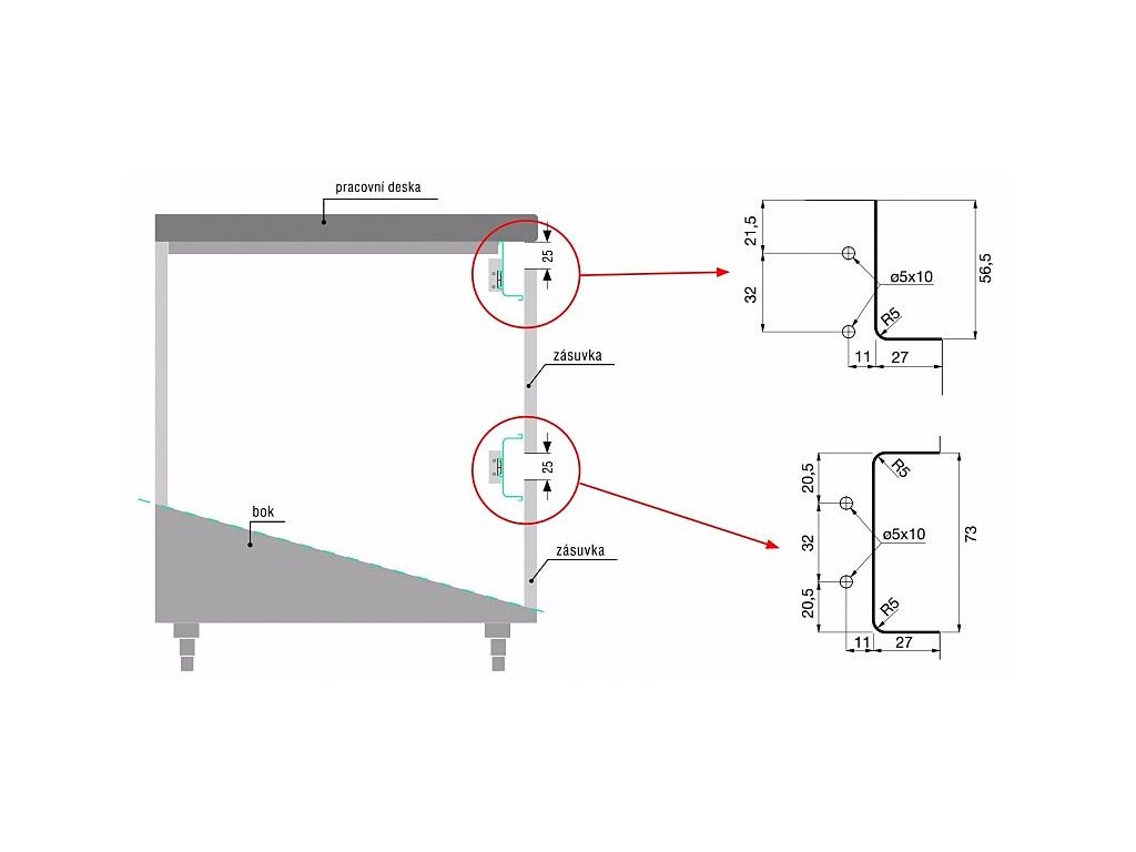 S99 uchytenie k profilom S056 a S057 pre montáž pomocou skrutiek - materiál kov.