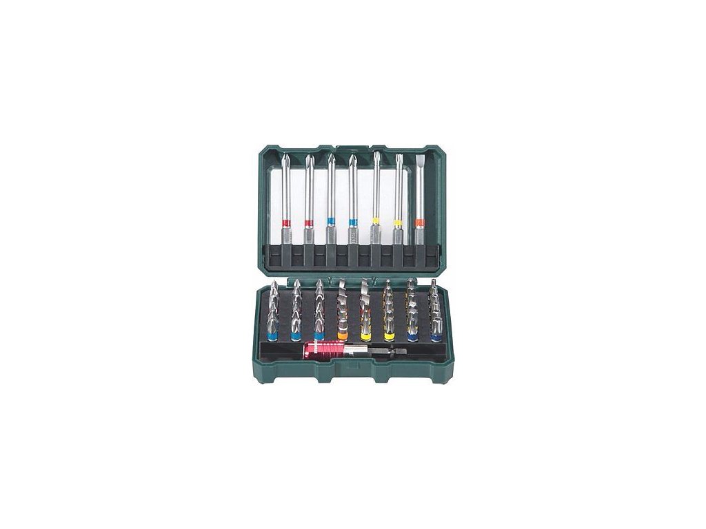 L= 25 mm (48 ks.): PH 1 x 3, PH 2 x 3, PH 3 x 3; PZ 1 x 3, PZ 2 x 3; PZ 3 x 3; SL 4 x 2, SL 5 x 2, SL 6 x 2; H 3 x 1, H 4 x 1, H 5 x 1; T 10 x 2, T 15 x 2, T 20 x 2, T 25 x 2, T 27 x 2, T 30 x 2, T 40 x 2; Torx Tamper: T 10 x 1, T 15 x 1, T 20 x 1, T 25 x 1, T 27 x 1, T 30 x 1, T 40 x 1