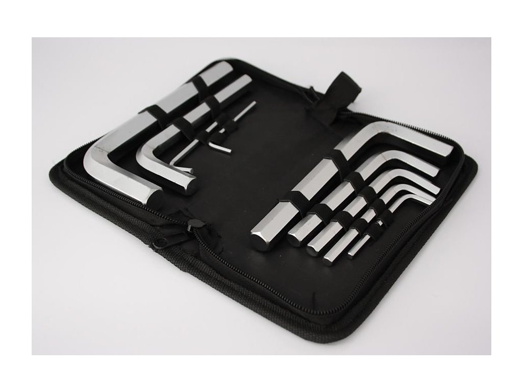 Sada imbusových kľúčov v peračníku. Veľkosti kľúčov - 3; 4; 5; 6; 8; 10; 12; 14; 17 mm.