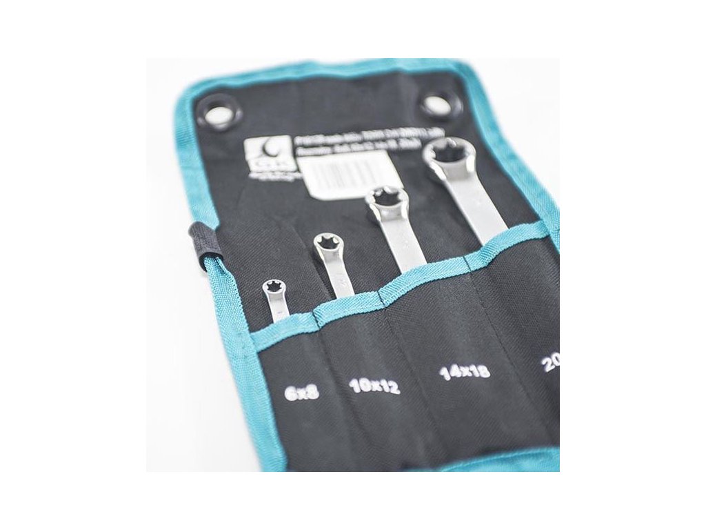 Sada TORX kľúčov v textilnom obale. V sade sa nachádza 4 diely kľúčov:
