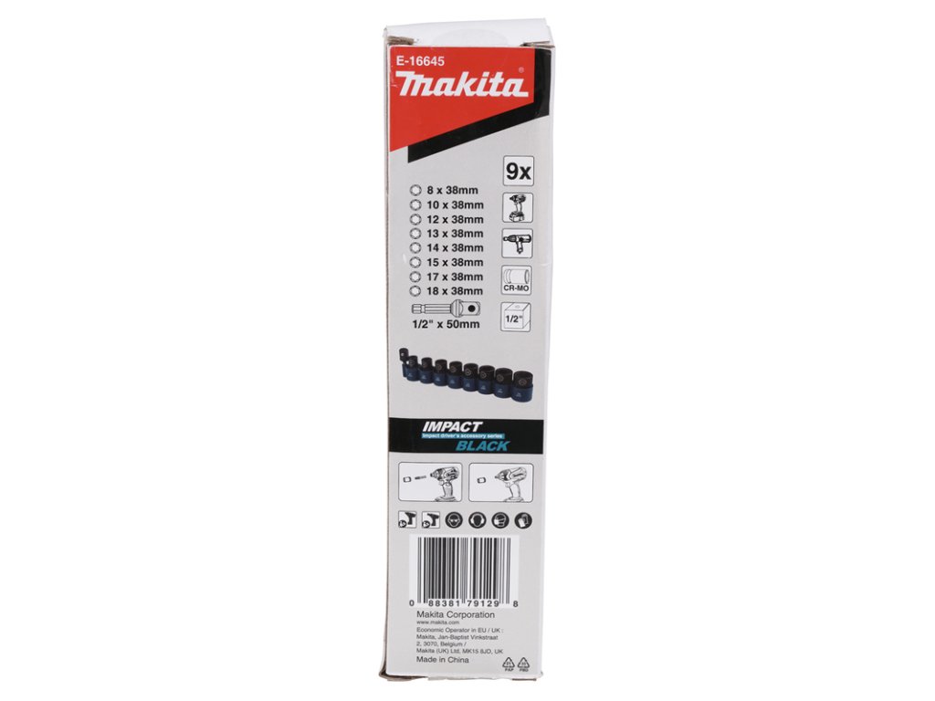 MAKITA E-16645 Sada orechov gola + adaptér 1/2" 9-dielna