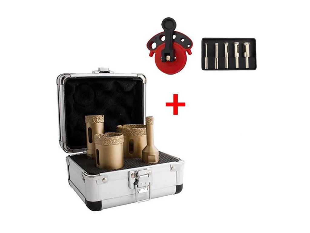 Sada dutých diamantových vrtákov - na dlaždice, keramiku, mramor a žulu vŕtacia šablóna s prísavkou zaistí stabilitu pri vŕtaní.