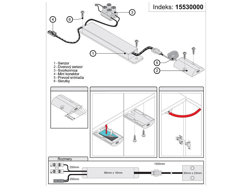 Spínač sa používa pre bezkontaktné približovacie zapnutie / vypnutie osvetlenia pri otváraní / zatváraní dverí do skrine , zásuvky , skrine alebo skrine . Modul je určený pre LED osvetlenie výkonom do 15W .
