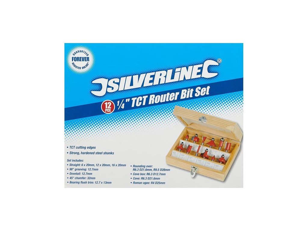 SILVERLINE sada stopkových frézok 12-dl. 6,35mm 1/4" stopka 792084