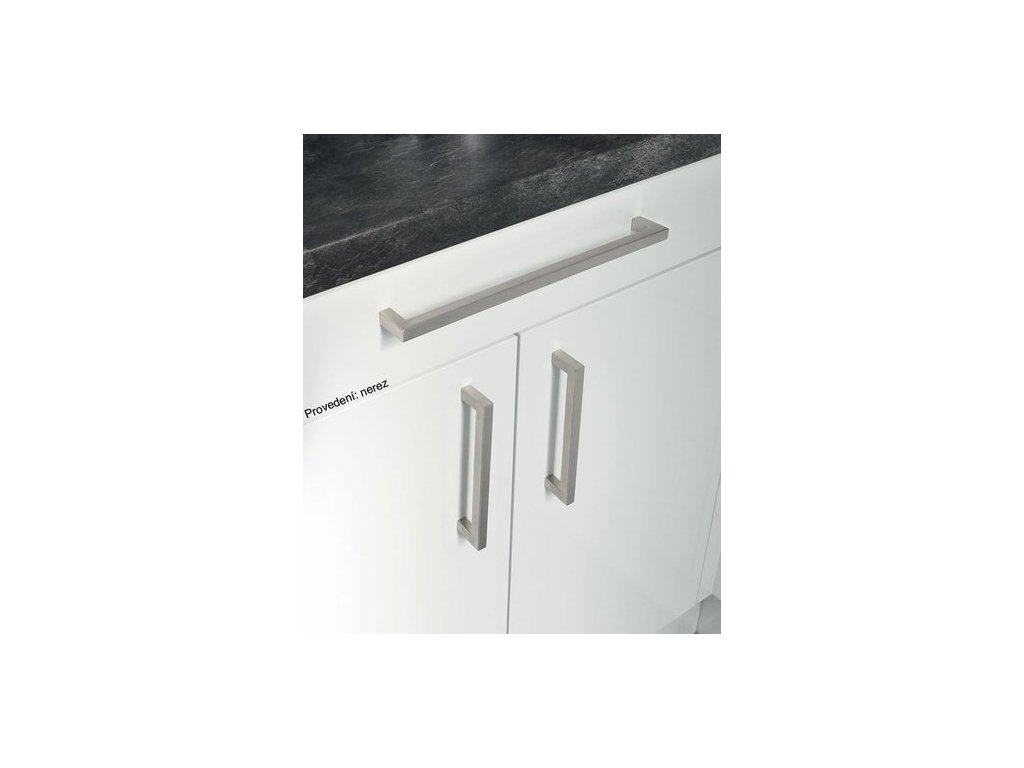Táto úchytka má jednoduchý, moderný dizajn s pravouhlými líniami a hranatým tvarom. Je vyrobená z nerezu a pôsobí elegantne a industriálne. Hladká a rovná horná časť úchytky zaisťuje pohodlné uchopenie, zatiaľ čo robustné nôžky zaručujú stabilné upevnenie na nábytku. Tento minimalistický štýl je ideálny pre moderné kuchyne, kúpeľňové skrinky alebo kancelársky nábytok, kde vynikne svojou decentnou a funkčnou estetikou.