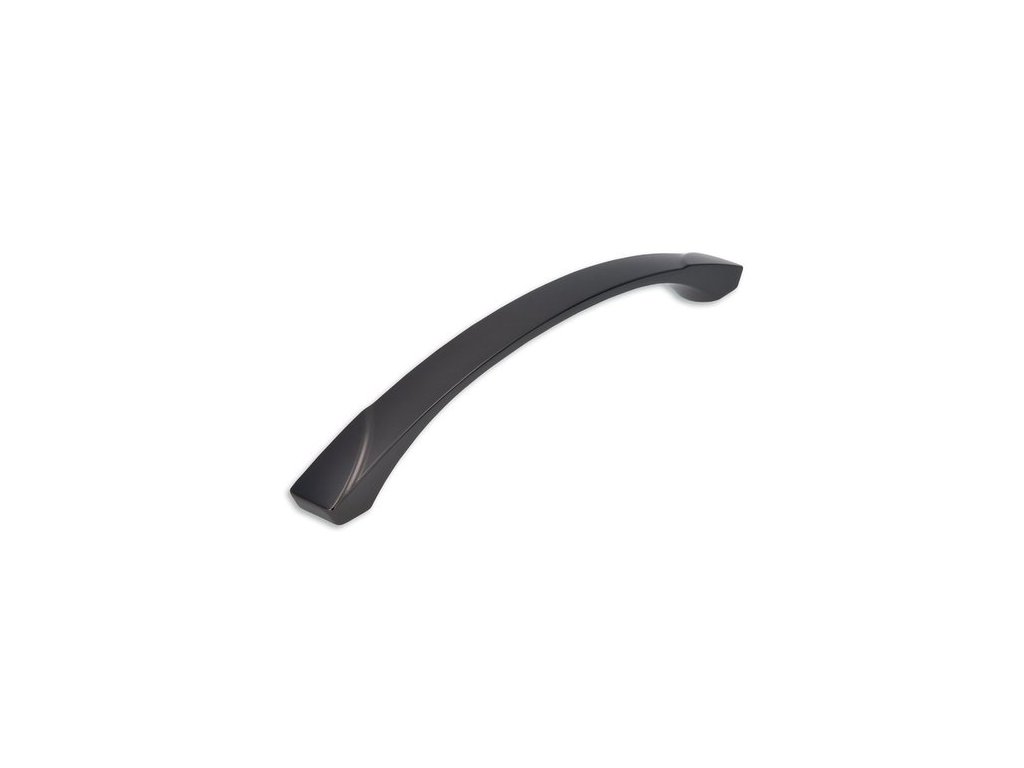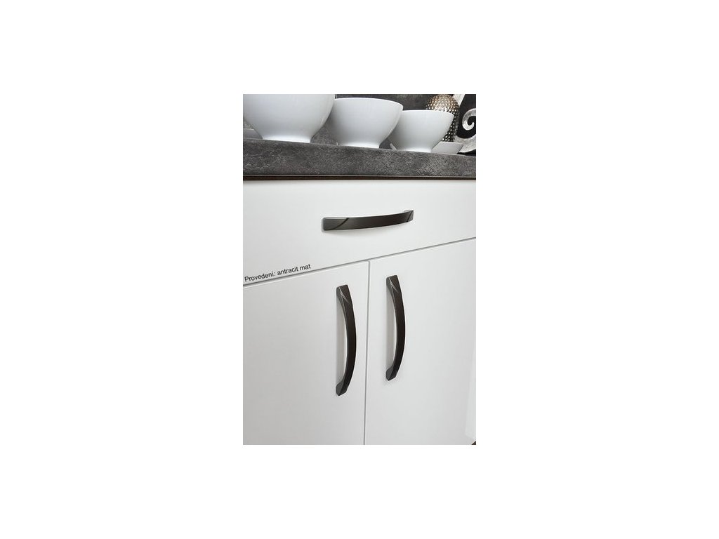 Táto úchytka má elegantný, mierne zakrivený tvar, ktorý kombinuje moderné a klasické prvky. Je vyrobená z kovu s matným antracitovým povrchom, ktorý jej dodáva sofistikovaný a luxusný vzhľad. Povrch je hladký, s jemnými geometrickými detailmi na koncoch, ktoré zdôrazňujú jej štýlový dizajn. Vďaka zaoblenému profilu je úchytka pohodlná na uchopenie a ideálna pre nábytok v moderných aj tradične ladených interiéroch. Vhodná pre kuchynské linky, šatníkové skrine alebo iné kusy nábytku, kde vynikne jej jednoduchá, ale esteticky výrazná forma.