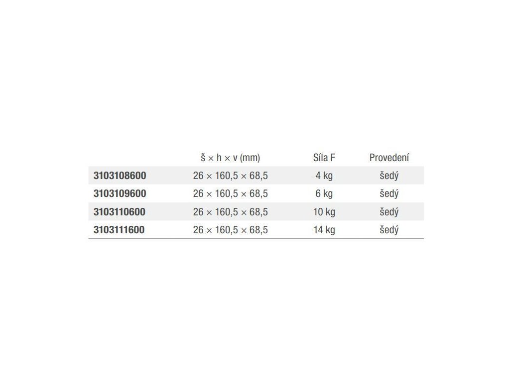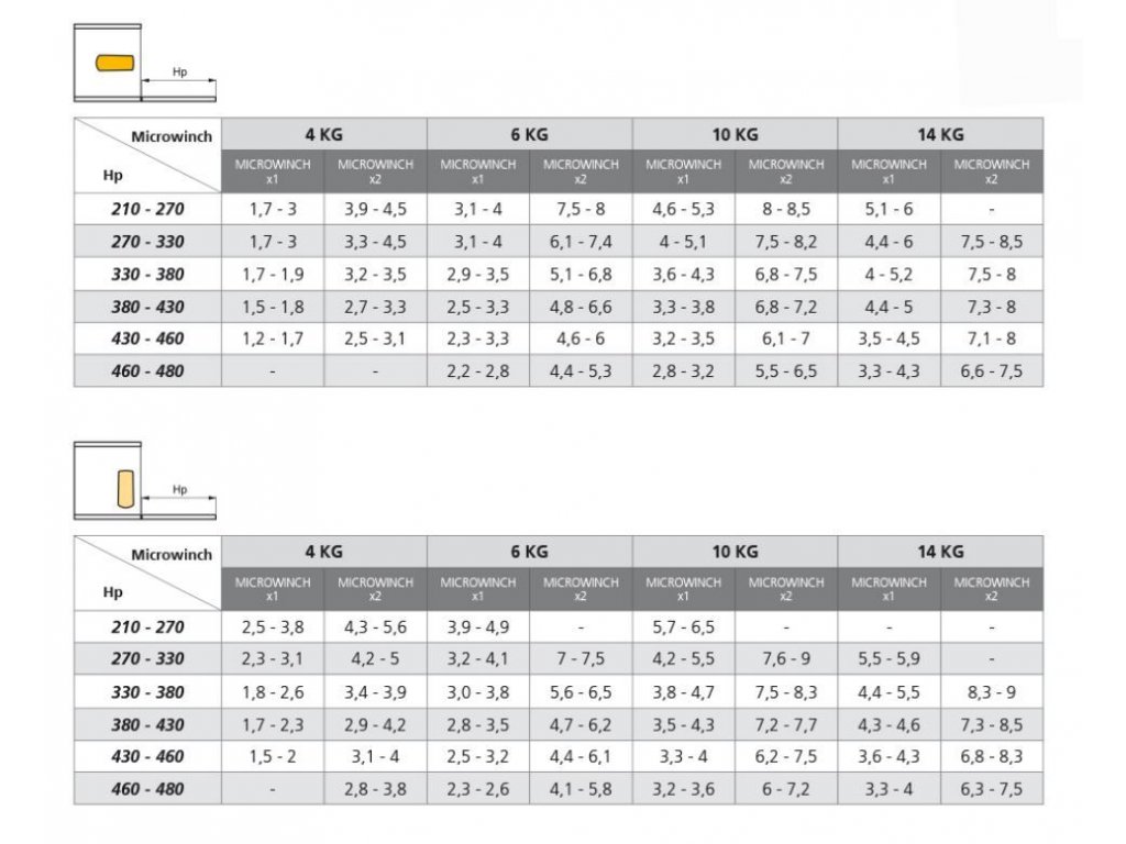 možnosť použitia pre dvierka vysoké 200 až 480 mm, s maximálnou váhou do 7,5 kg.