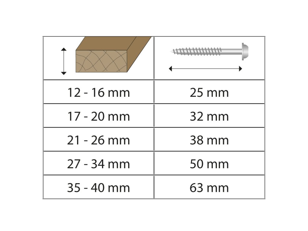 Tieto skrutky pre skryté spoje sú určené pre použitie s IGM Zvŕtavacími prípravkami Pocket Hole pri vŕtaní skrytých skrutkovaných spojov. Skrutky sú k dispozícii s hrubým závitom pre mäkké drevo, v rôznych dĺžkach - 38, 50 a 63 mm. Skrutky majú tanierovú hlavu Robertson č. 2. Skrutky sú vyrobené z pozinkovanej ocele a sú vhodné pre použitie predovšetkým v interiéri.