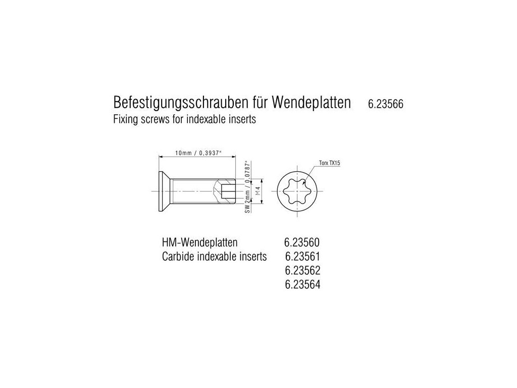 - Skrutky disponujú vnútorným šesťhranom na strane závitu, aby mohli byť vymeniteľné doštičky vymenené aj pri poškodenej skrutke a skrutky mohli byť nahradené.