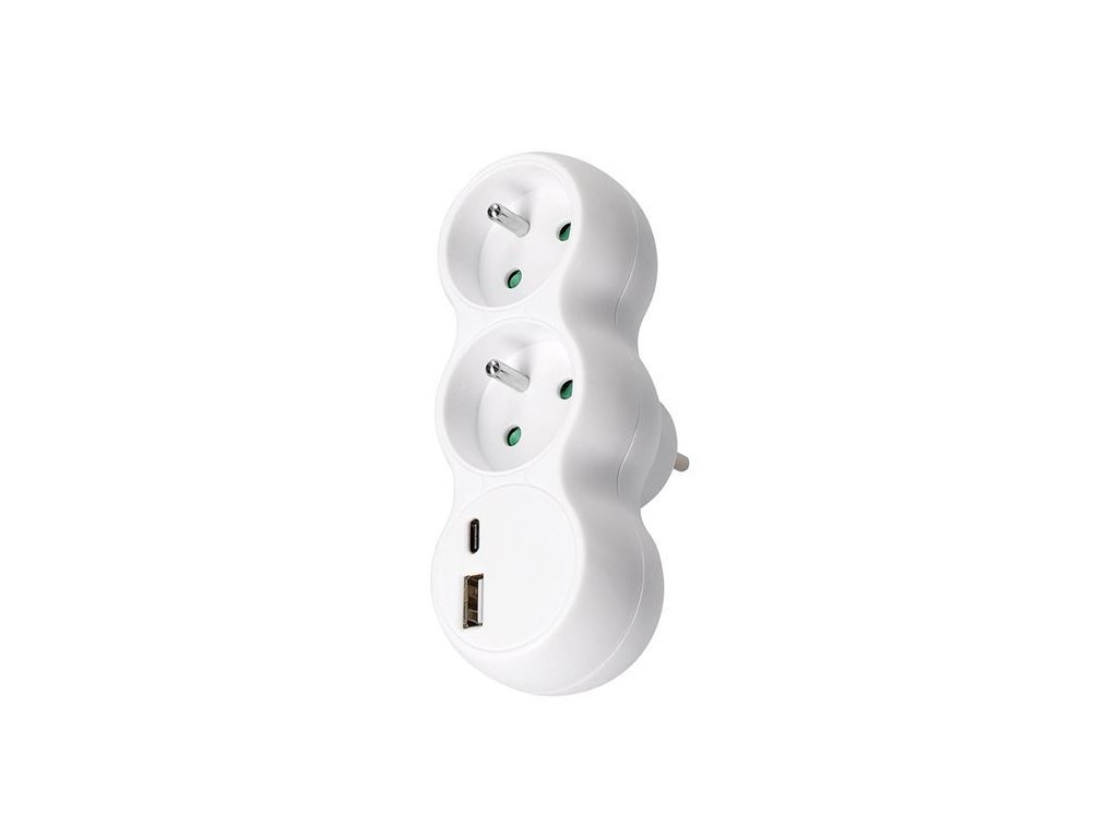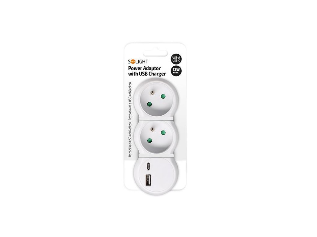 Solight rozbočovač s USB A+C nabíjačkou, 2 x 10A, biely P100USBC