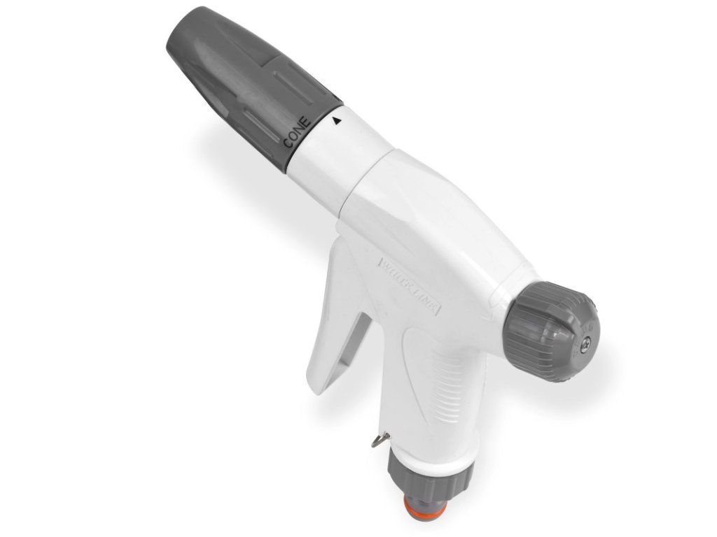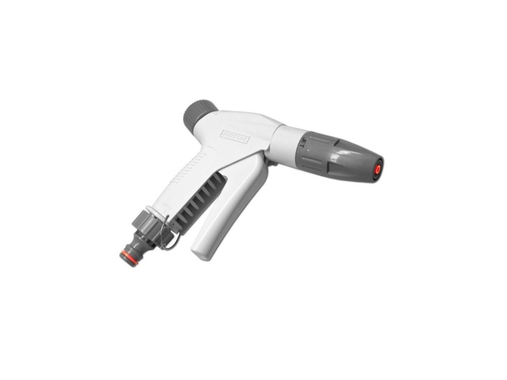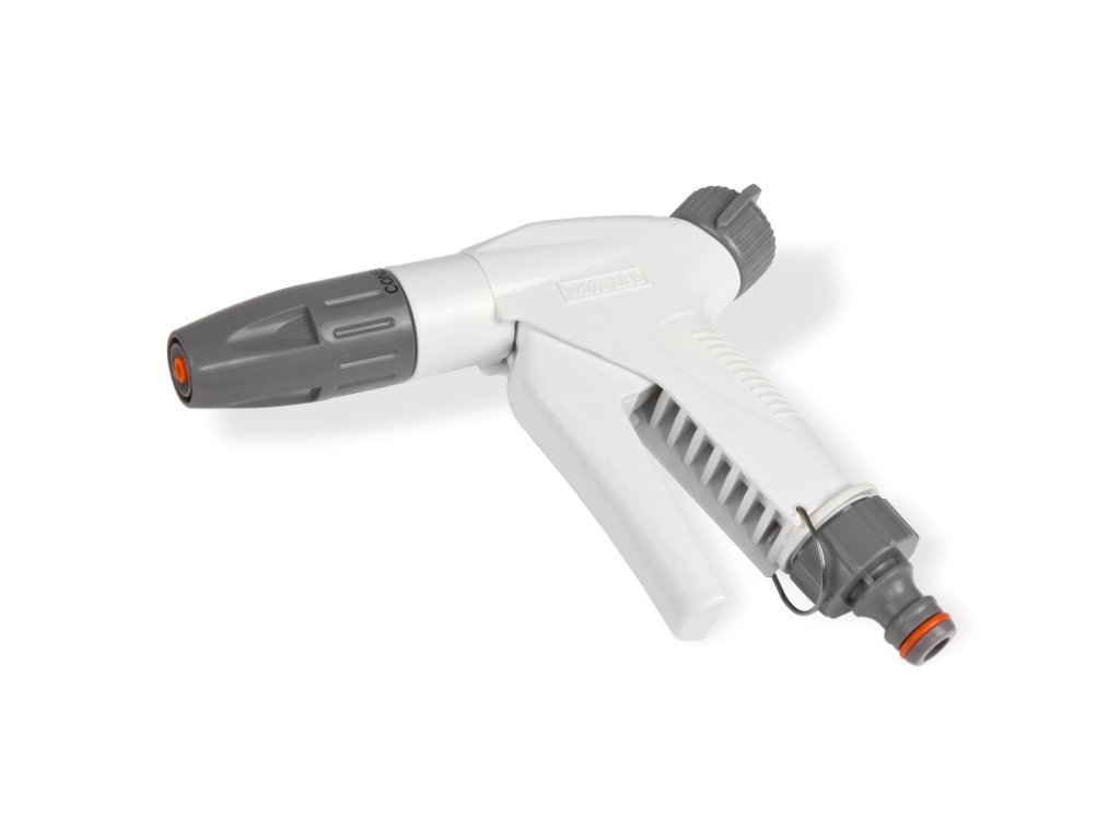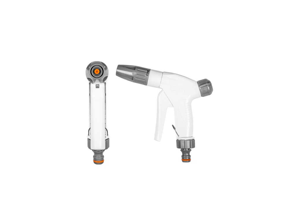 Plastová striekacia pištoľ na zavlažovanie záhrady 1/2", 2 - stupňová plynulá regulácia prietoku vody. Rukoväť so špeciálnym protišmykovým povrchom. Možnosť blokovať prietok vody. Vhodná pre systém Gardena.