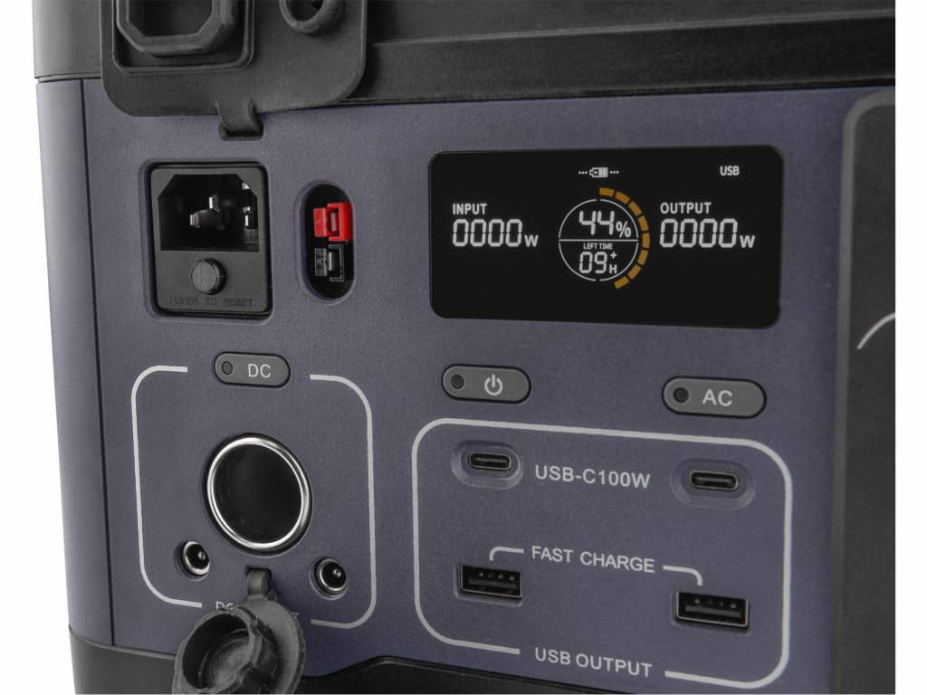 - 2x 230V zásuvka, 2x USB-C, 2x USB-A, autozásuvka, 2×DC5521 konektor (5,5×2,1mm)