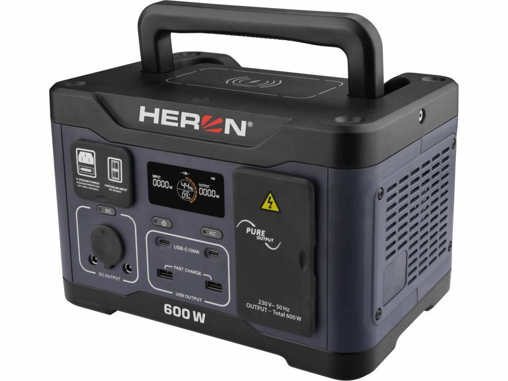 Prenosná nabíjacia stanica HERON je spoľahlivým zdrojom energie pre domácnosť, outdoorové aktivity, cestovanie, ale aj pri výpadkoch elektriny. S prevádzkovým výkonom až 600W dokáže napájať širokú škálu zariadení, vrátane elektroniky, osvetlenia či malých spotrebičov. Absencia spaľovacieho motora robí tento zdroj jednoduchým na obsluhu, jeho prevádzka je bez hluku a exhalátov, čo umožňuje využitie aj v interiéri. Vďaka technológii LiFePo4 batérií ponúka dlhú životnosť, vyššiu bezpečnosť a stabilný výkon. Stanica disponuje viacerými výstupmi, vrátane dvoch 230V zásuviek, USB-C s max. výkonom až 200 W a rýchlonabíjacím USB-A QC 3.0 portom, ktoré umožňujú nabíjať smartfóny, notebooky a ďalšie zariadenia rýchlo a efektívne. Invertorová technológia zaručuje čisté výstupné napätie na 230V zásuvkách, vhodné aj na napájanie citlivej elektroniky. Na hornej strane ponúka bezdrôtové nabíjanie mobilných zariadení a na zadnej strane je vybavená svietidlom s 5 režimami svietenia. Podpora solárneho nabíjania (MPPT) z nej robí ekologické riešenie na cestách. Kompaktné rozmery a nízka hmotnosť 7kg umožňujú jednoduchú manipuláciu. Táto stanica je perfektným riešením pre každého, kto potrebuje spoľahlivý a flexibilný zdroj energie kdekoľvek.