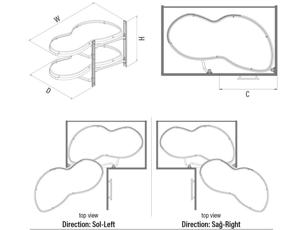 - Kôš pre rohové skrine s tlmením. Tlmené vysunutie a zasunutie police.