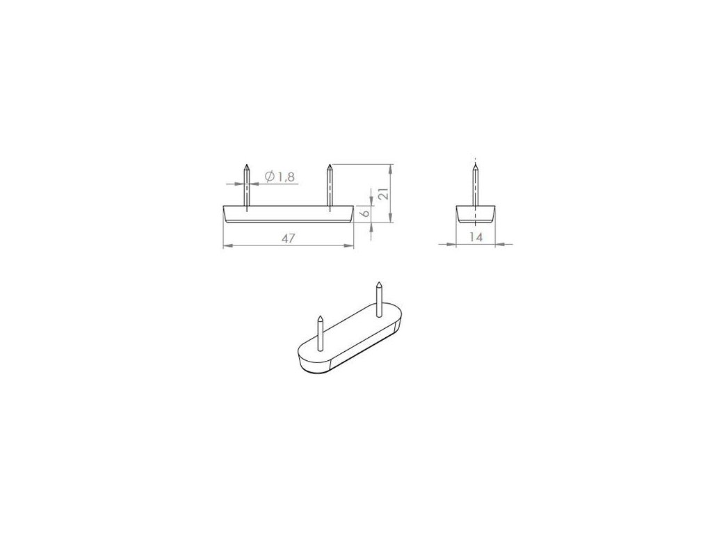Materiál: plast. Dĺžka 47 mm, šírka 14 mm, celková výška 21 mm, výška klzáka 6 mm.