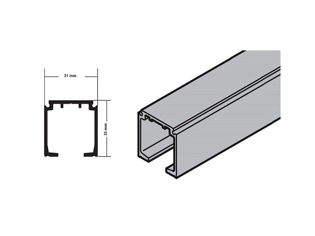 Dostupný v dĺžkach od 2 do 6 metrov, tento profil ponúka flexibilitu pri inštalácii a je možné ho prispôsobiť pre rôzne veľkosti dverí. So šírkou 33 mm a výškou 31 mm poskytuje profil pevné a stabilné vedenie pre vaše posuvné dvere.