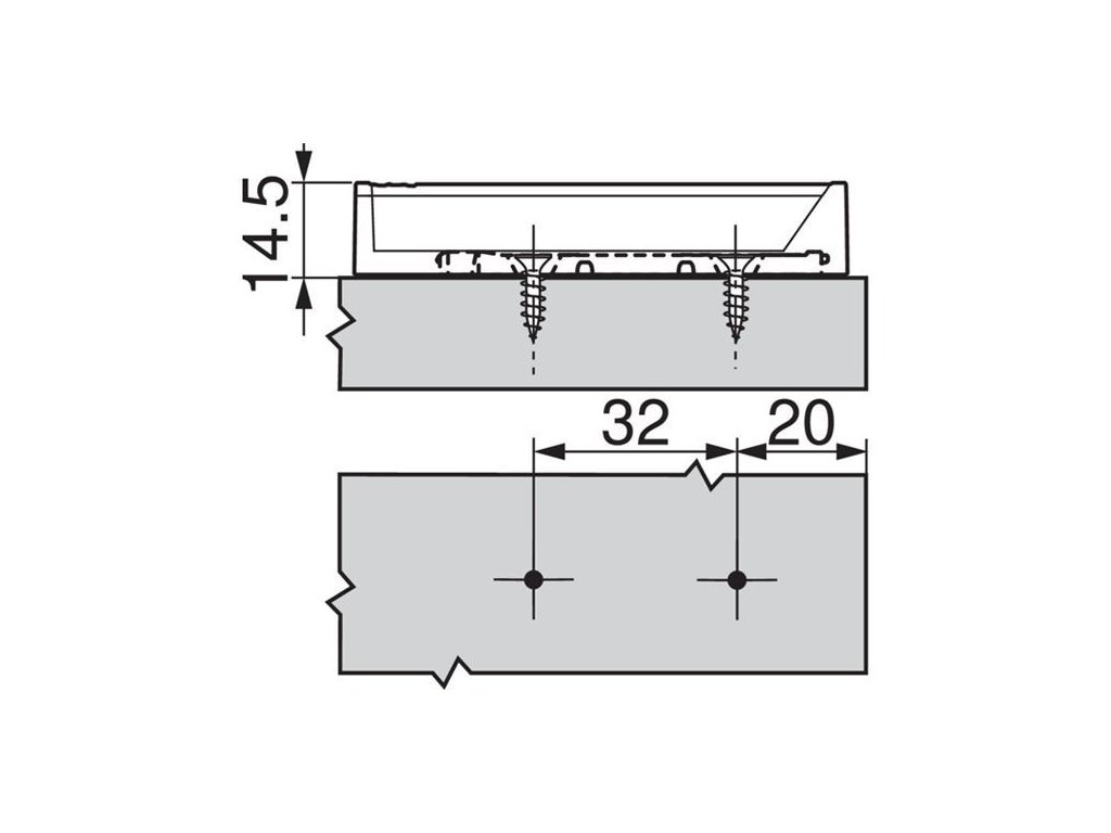 Blum 956A1201 / TIP-ON dlhý, priamy adaptér pre dvierka, 20/32 mm