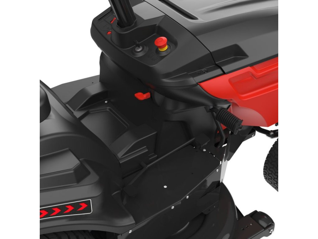 Traktorová kosačka s výkonným štvortaktným motorom, hydrostatickou prevodovkou, 210-litrovým zberným vakom pre dostatočný čas kosenia. Kolesá s pneumatikami, 5-polohové centrálne nastavenie výšky kosenia, elektrický štart, prípojka na čistenie, vypínateľný žací mechanizmus, parkovacia brzda. LED pracovné svetlomety, závesná spojka na pripojenie záhradného vozíka.