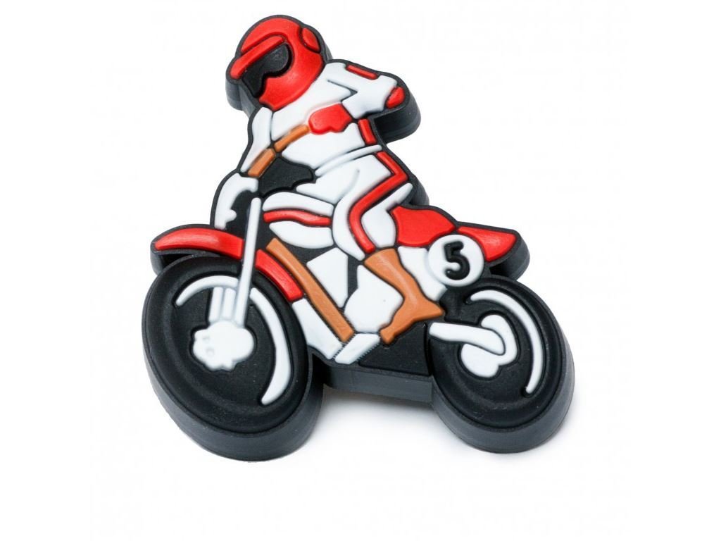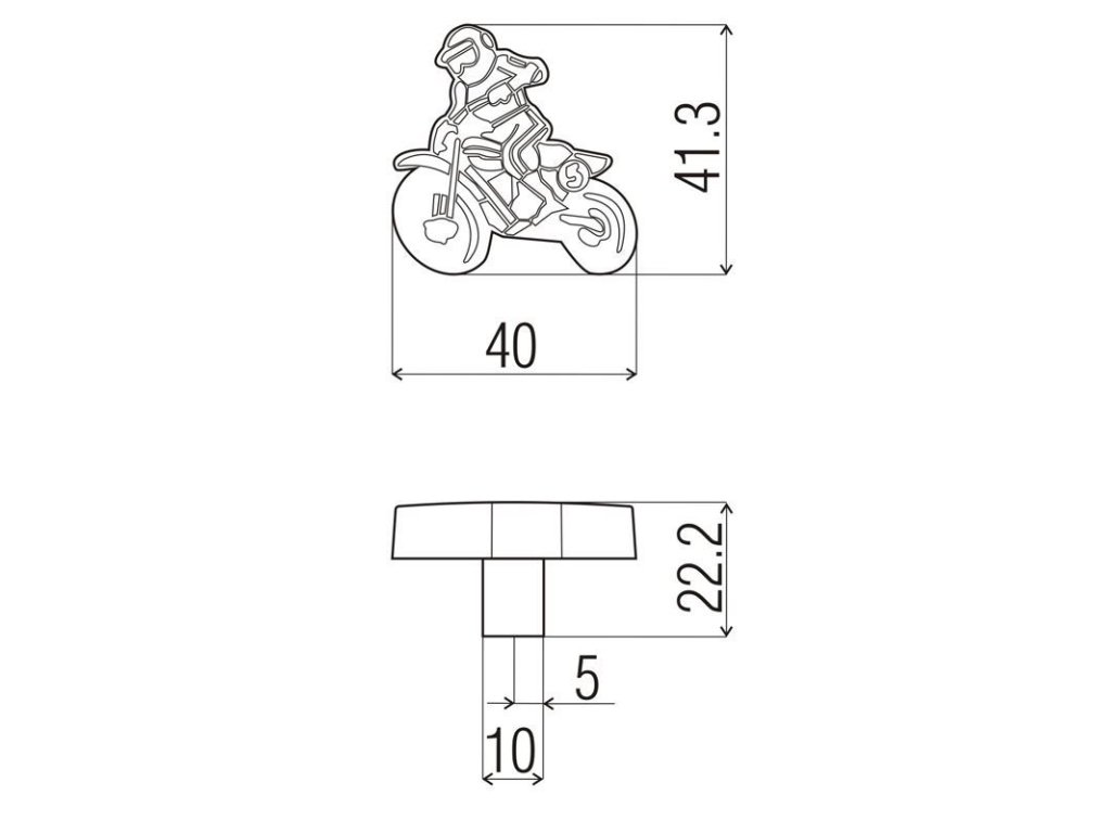 Úchytka - knopok značky DC v tvare motorkára.