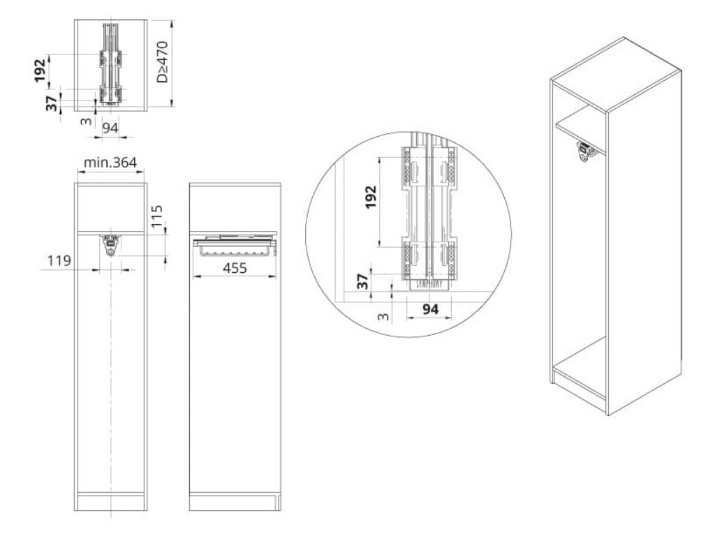 Tento model, ktorý je súčasťou série SYMPHONY , je rovnako ako ostatné produkty v tejto rade vybavený systémom úplného výsuvu. To umožňuje úplne vytiahnuť jednotku, čo umožňuje jednoduchý prístup ku všetkým uloženým predmetom, dokonca aj k tým na samom konci vešiaka.
