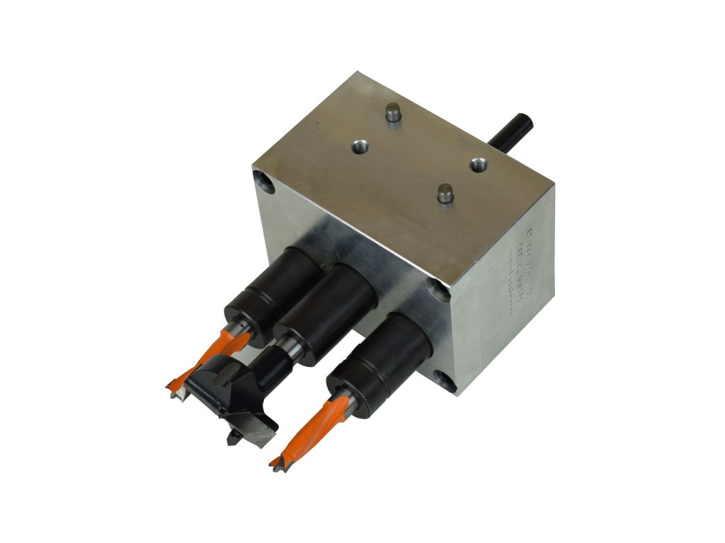 Revolučný vŕtací prípravok sa skladá zo stojanu a 8 typov vŕtacích hláv, ktoré je možné namontovať na stojan. Môžete tak vŕtať otvory pre závesy Hettich, Blum, Mepla, Grass, FGV, pre malé závesy 26 mm, pre okenné kľučky alebo použiť hlavu s 5 vretenami s rozstupom 32 mm pre vŕtanie dier pre kolíky či nosiče políc. Použitie s ručnou vŕtačkou alebo na stojanových vŕtačkách. Pre mazanie použite olej Mobil SHC100.