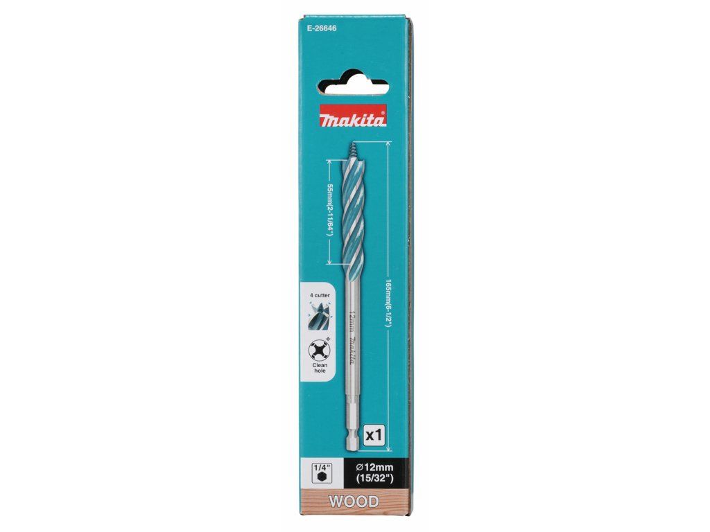 Makita Špirálový vrták do dreva so strediacim hrotom a 4 bočnými britmi s upínaním 1/4"