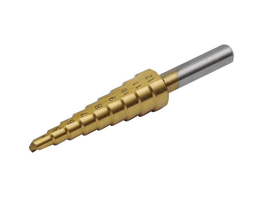 Vrták stupňovitý TiN, Ø4-12mm, stupňovanie 1mm, 9 otvorov, EXTOL CRAFT 20051