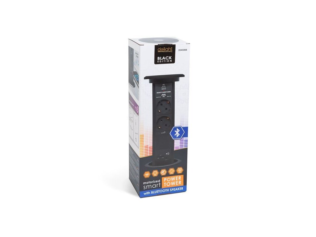 Skrytá predlžovačka so zabudovaným motorom - s bluetooth-om čierna >2 x 250V + 2 x USB + AUX