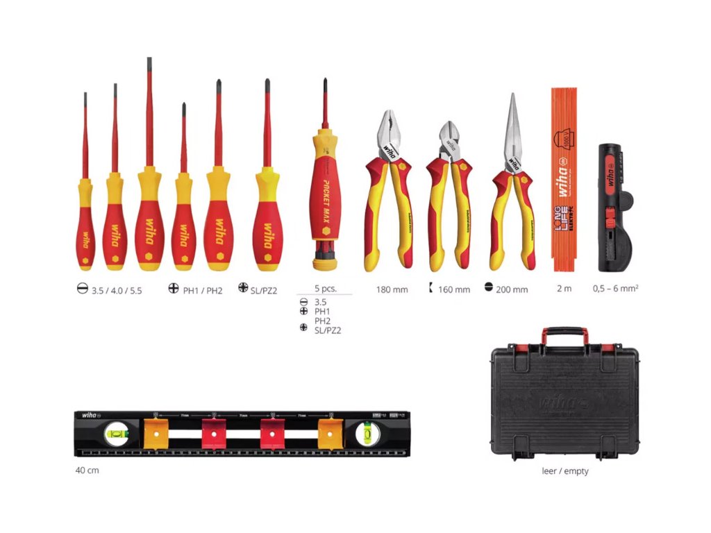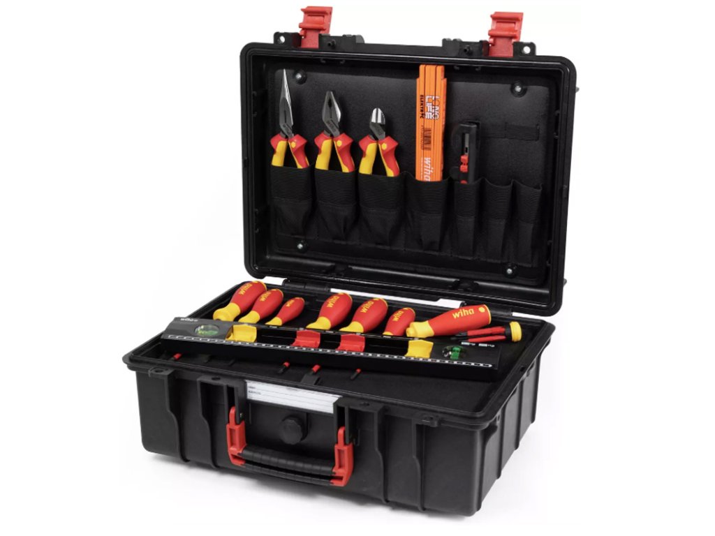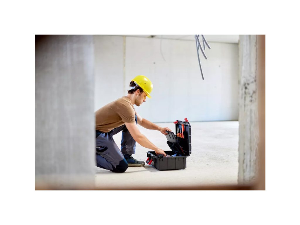 Pri mobilnom používaní nie je jednoduché nosiť so sebou všetky potrebné nástroje a zároveň udržiavať poriadok. S kufríkom na náradie Basic má mobilný elektrikár presvedčivú výbavu a nestráca prehľad. Pre optimálne základné vybavenie je praktický kufrík na náradie vybavený radom kvalitného ručného náradia, z ktorých väčšina ponúka dodatočnú bezpečnosť pri práci na živých častiach vďaka izolácii s certifikátom VDE. Navyše vďaka prídavným pútkam a dodatočnému úložnému priestoru kufrík ponúka dostatok priestoru pre ďalšie individuálne vybavenie. Puzdro vyrobené z polypropylénu zaručuje robustnosť a je možné ho zabezpečiť proti krádeži pomocou integrovaných očiek s visiacimi zámkami (tie nie sú súčasťou dodávky). Ergonomická dvojzložková rukoväť zaisťuje pohodlné nosenie. Kufrík s náradím Basic je vďaka ventilu na kompenzáciu tlaku vzduchu ideálny aj na lety a možno ho jasne priradiť majiteľovi pomocou existujúcej menovky s vlastným štítkom. Puzdro na náradie Wiha je certifikované podľa triedy ochrany IP 67 a je prachotesné a vodotesné. Svojím objemom 20 l a prípustnou nosnosťou do 14,2 kg je pripravený na široké spektrum prevádzkových podmienok.