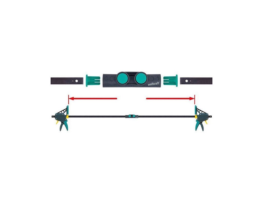 Praktický adaptér pre ručné svorky Wolfcraft, jednoducho a rýchlo spojí 2 svorky dohromady a umožní prácu s väčšími formátmi.