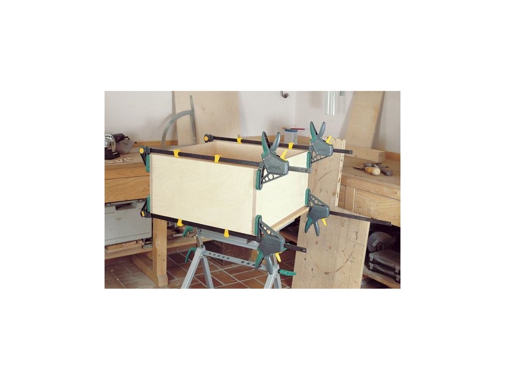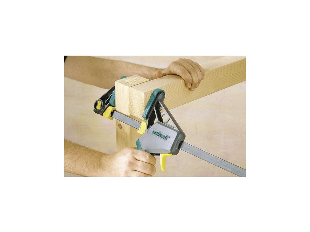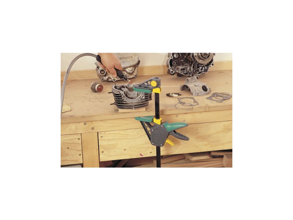 Jednoduché prestavenie na rozpernú funkciu len stlačením tlačidla. Jednoduché zaobchádzanie a istejšie držanie ergonomickej rukoväte s protišmykovým pásom. Posuvný držiak šetrí obrábaný predmet a slúži ako podložka. Drážka v krytke čeľuste pre istejšie upínanie okrúhlych predmetov. Rovnomerne a až do konca svorky rozdelená upínacia sila vďaka veľkej upínacej ploche a extrémnemu vyloženiu 100 mm.