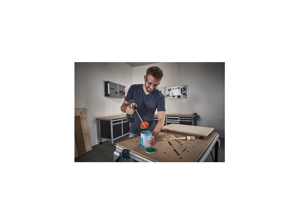 miešadlo na farbu pre vŕtačky na miešanie farieb, lakov a lazúr miešací nástavec s priemerom 60 mm pre rovnomerné rozloženie miešaného materiálu stopka s kruhovým prierezom Ø 6 mm pre všetky bežné skľučovadlá jednoduché miešanie materiálov s nízkou viskozitou do 5 kg |