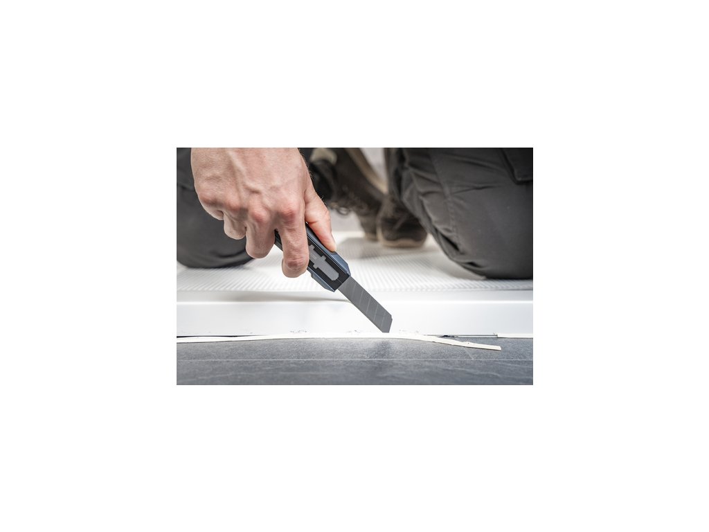 Dvojitý orezávací / škrabací nôž má dve samostatné 18 mm široké čepele na rezanie a škrabanie – ideálne na odstraňovanie a čistenie silikónových spojov. Pomocou odihlovacej čepele môžete robiť čisté rezy v silikóne a iných materiáloch. Škrabacia čepeľ s čelným výbrusom umožňuje efektívne odstraňovanie zvyškov silikónu. Ergonomický dizajn výrobku zaisťuje maximálne pohodlie pri používaní. Vďaka štruktúrovanej dvojzložkovej rukoväti s mäkkou zónou možno s dvojitou škrabacou čepeľou manipulovať kontrolovaným spôsobom bez rizika pošmyknutia. Vybratia na prsty umožňujú optimálne uchopenie pri rezaní a škrabaní. Bezpečnostná funkcia zabraňuje vysunutiu oboch čepelí súčasne. Telo noža z robustného plastu zaručuje nielen maximálny prenos sily, ale aj dlhú životnosť. Stabilitu nožov pri práci zvyšuje aj kovové vedenie nožov. Odnímateľná krytka má v sebe pomôcku na kontrolované odlamovanie segmentov čepele a umožňuje výmenu čepele bez použitia náradia. Dvojitá škrabacia čepeľ je kompatibilná so všetkými komerčne dostupnými odlamovacími čepeľami so šírkou 18 mm a so škrabacími čepeľami Wolfcraft (č. položky 4311000). Dodržiavajte bezpečnostné pokyny a pokyny na používanie.