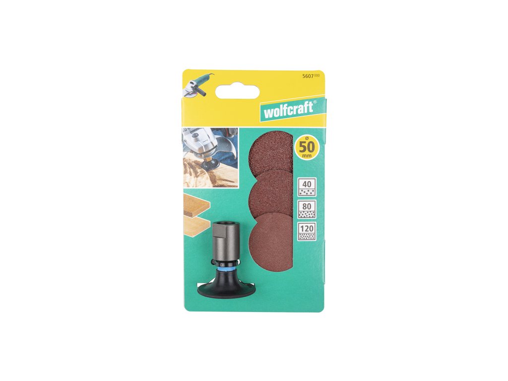 Wolfcraft súprava brúsnych kotúčov pre uhlové brúsky, pr. 50 mm. - unášač na brúsne kotúče pre uhlové brúsky
