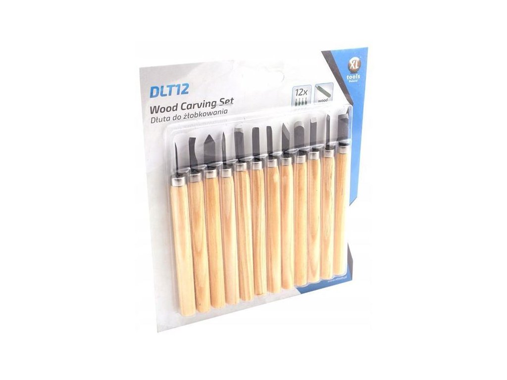 XL-TOOLS Sada rezbárskych dlát 12-dielna s drevenou rukoväťou na drážkovanie, 2.DLT12