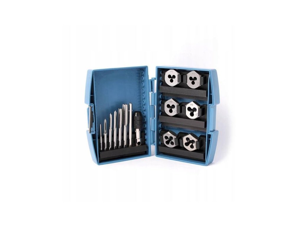 13-dielna súprava závitníkov a závitových očiek. Pre metrické závity.