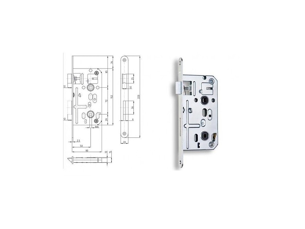 Zadlabavací zámok na WC. Jazýček je možné prispôsobiť na pravú alebo ľavú stranu.